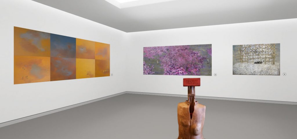 G.R. Iranna’s ‘Untitled’ diptych, for instance, conflates the real and the surreal to create a strange allegorical land where monks make music under lush canopies. Similarly Karl Antao’s finely carved teakwood torsos are an admixture of the playful and the subconscious, fused with elements from daily life.