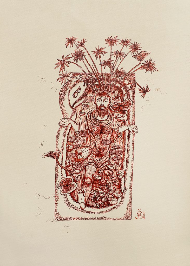 Swim-1 View in room ⛶ Zoom In Valay Gada Swim-1 Ink on somerset paper 14 x 10 inches 2024 EnquireShare