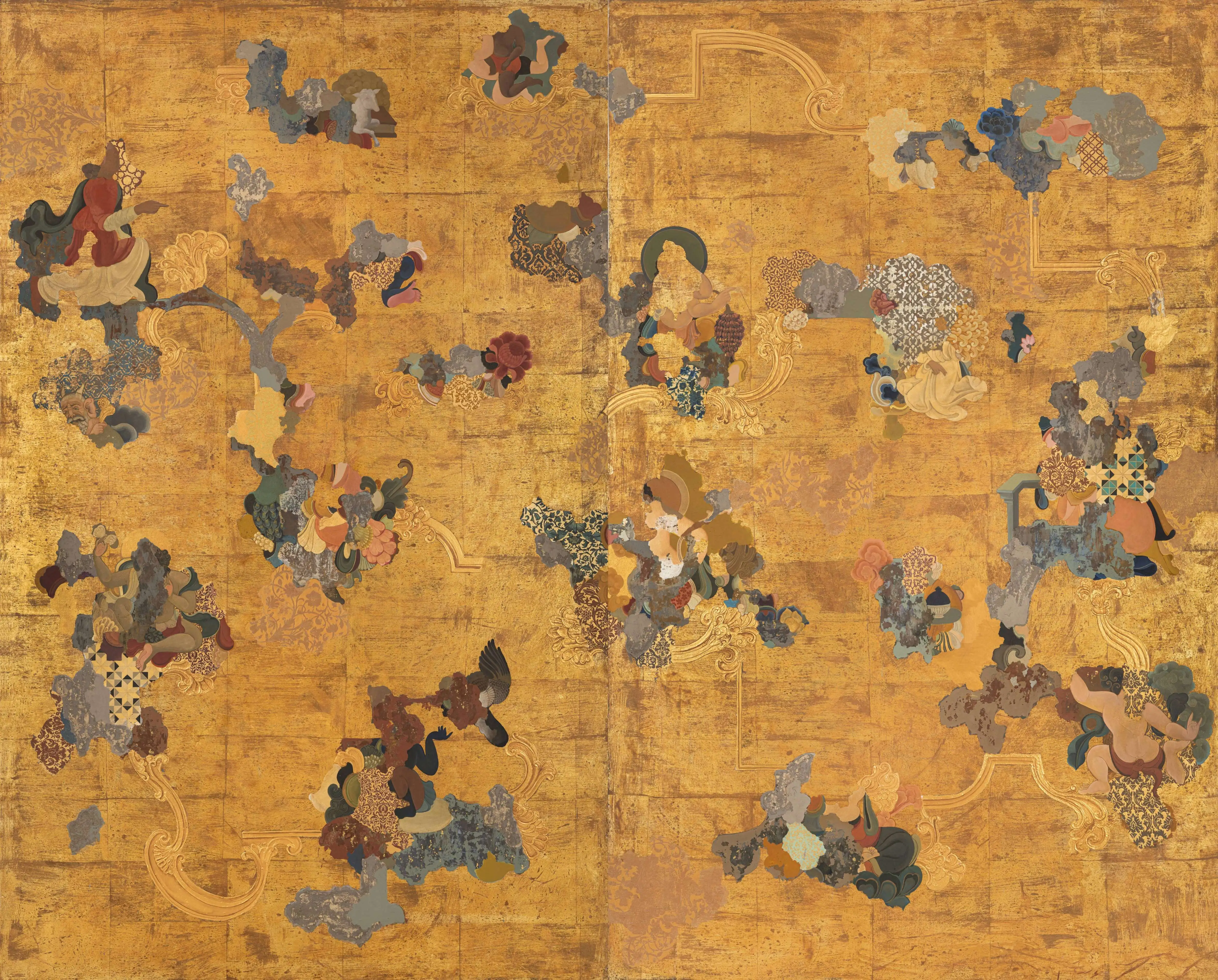 • Mixed Media & Gold Leaf on Canvas Pasted on Sunboard